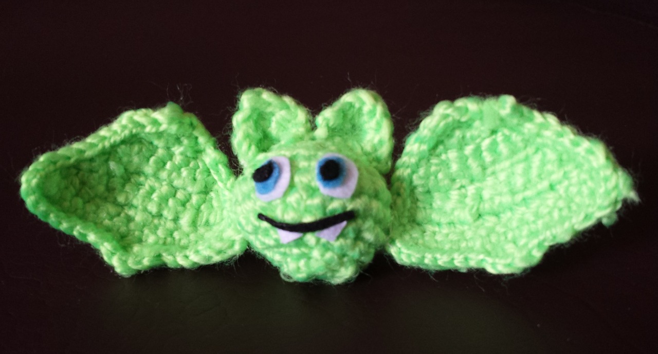 Precioso muñeco amigurumi que representa a un murcielago travieso 100 % hecho a mano; todos son distintos ya que se hacen uno a uno pieza a pieza.